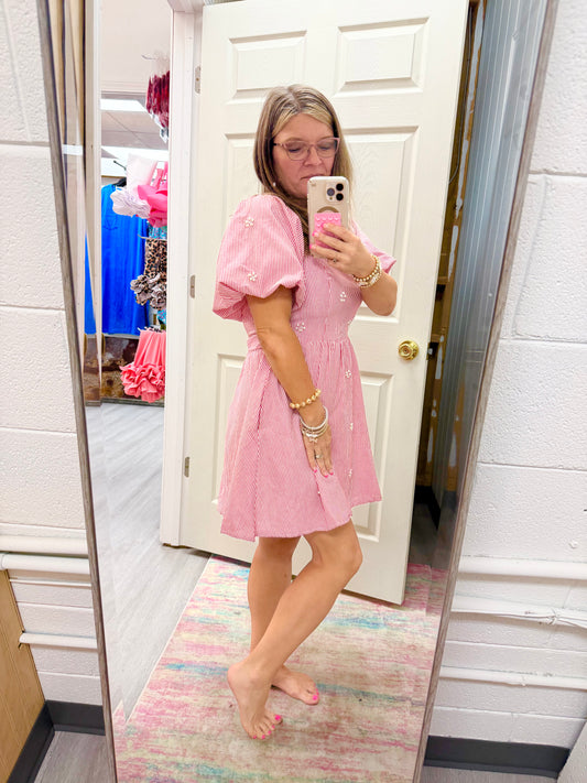 Women’s Peach Love Red & White Striped With Pearls Dress