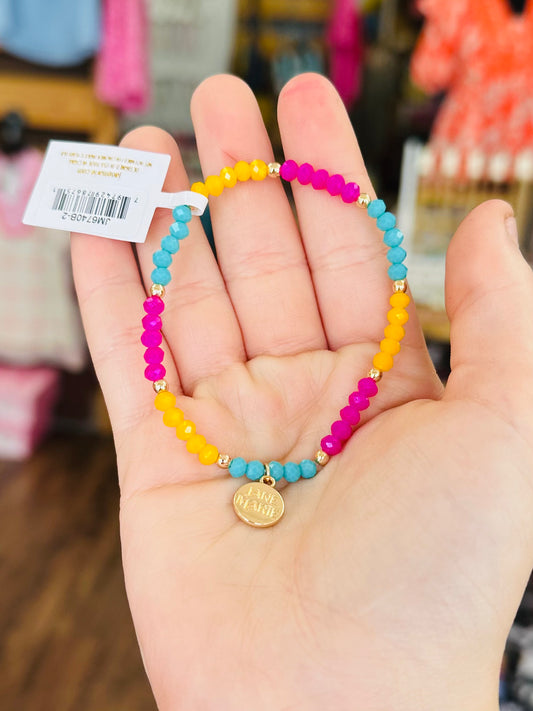KK Jane Marie Yellow, Pink, Tq Faceted Beaded Stretch Bracelet