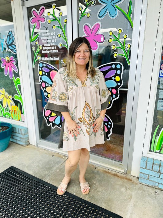 Women’s Apricot & Sage Embroidered Dress