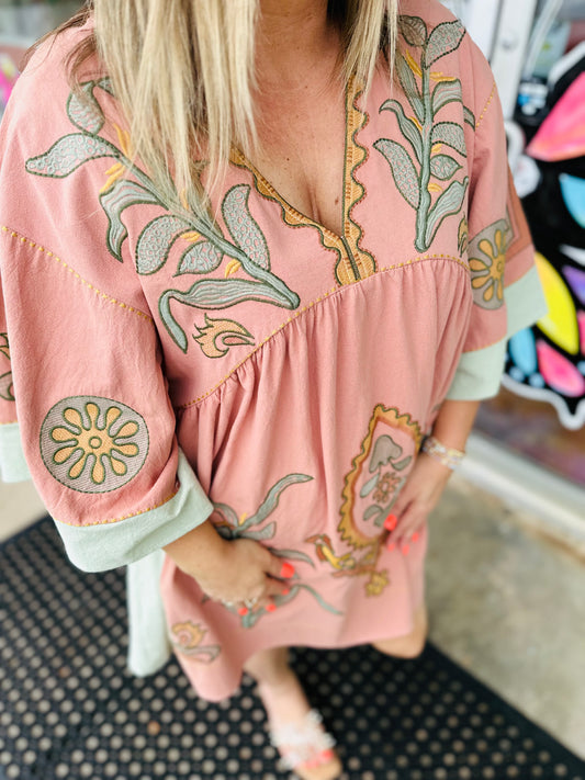 Women’s Pink & Sage Embroidered Dress