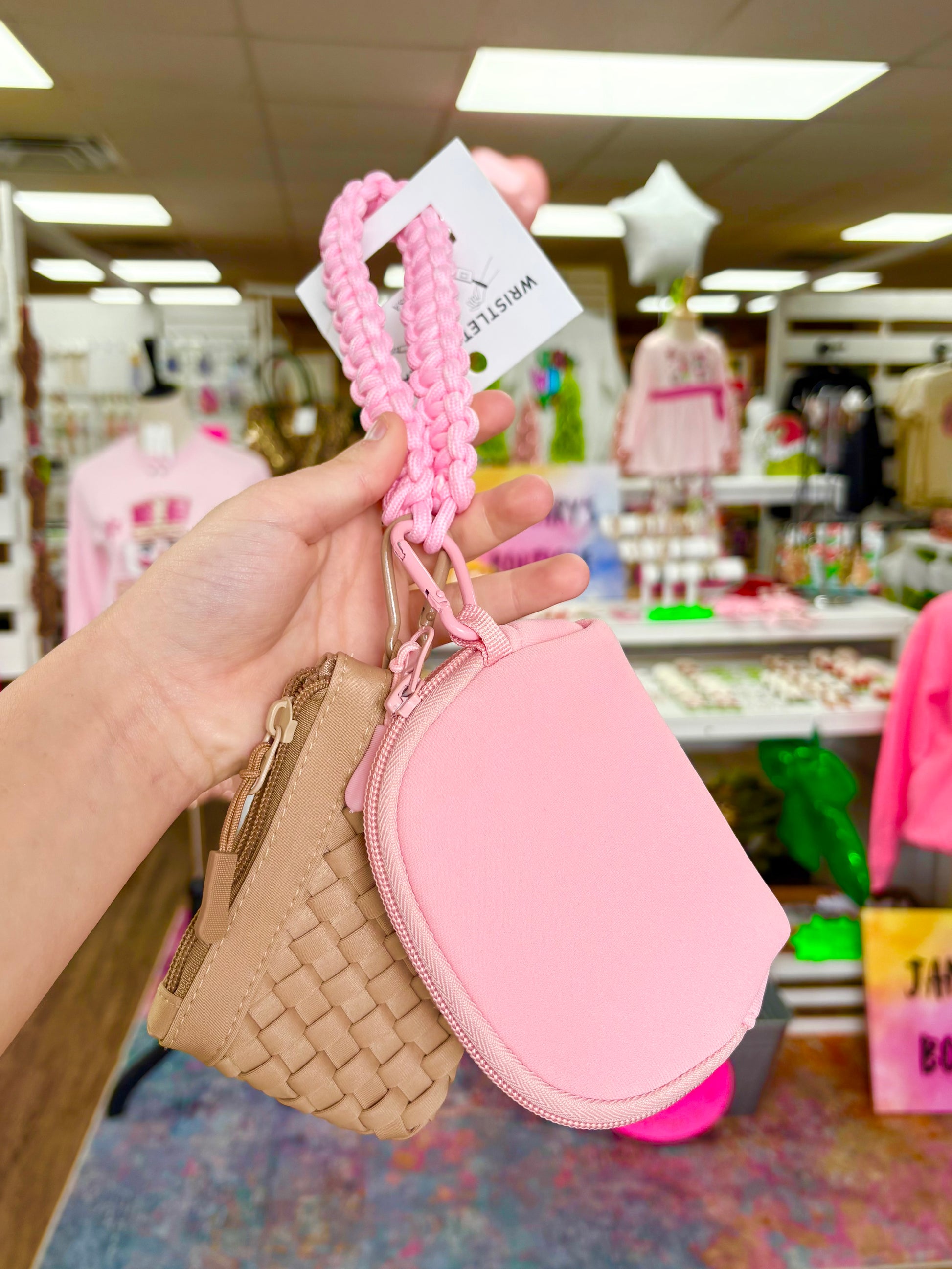 Brown/Pink Woven Rope Dual Wristlet