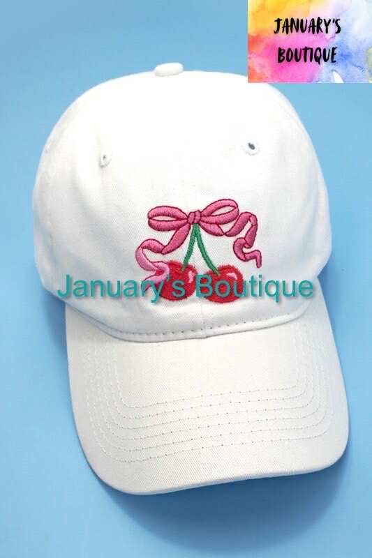 Charming baseball cap features an embroidered bow and cherry design, made from high-quality materials, it offers a comfortable fit and durability for everyday wear. The adjustable strap ensures a snug fit, DIMENSION: Height: 4.75" Brim: center 3" Circumference: 22" Adjustable strap in the back Material: 100% Polyester